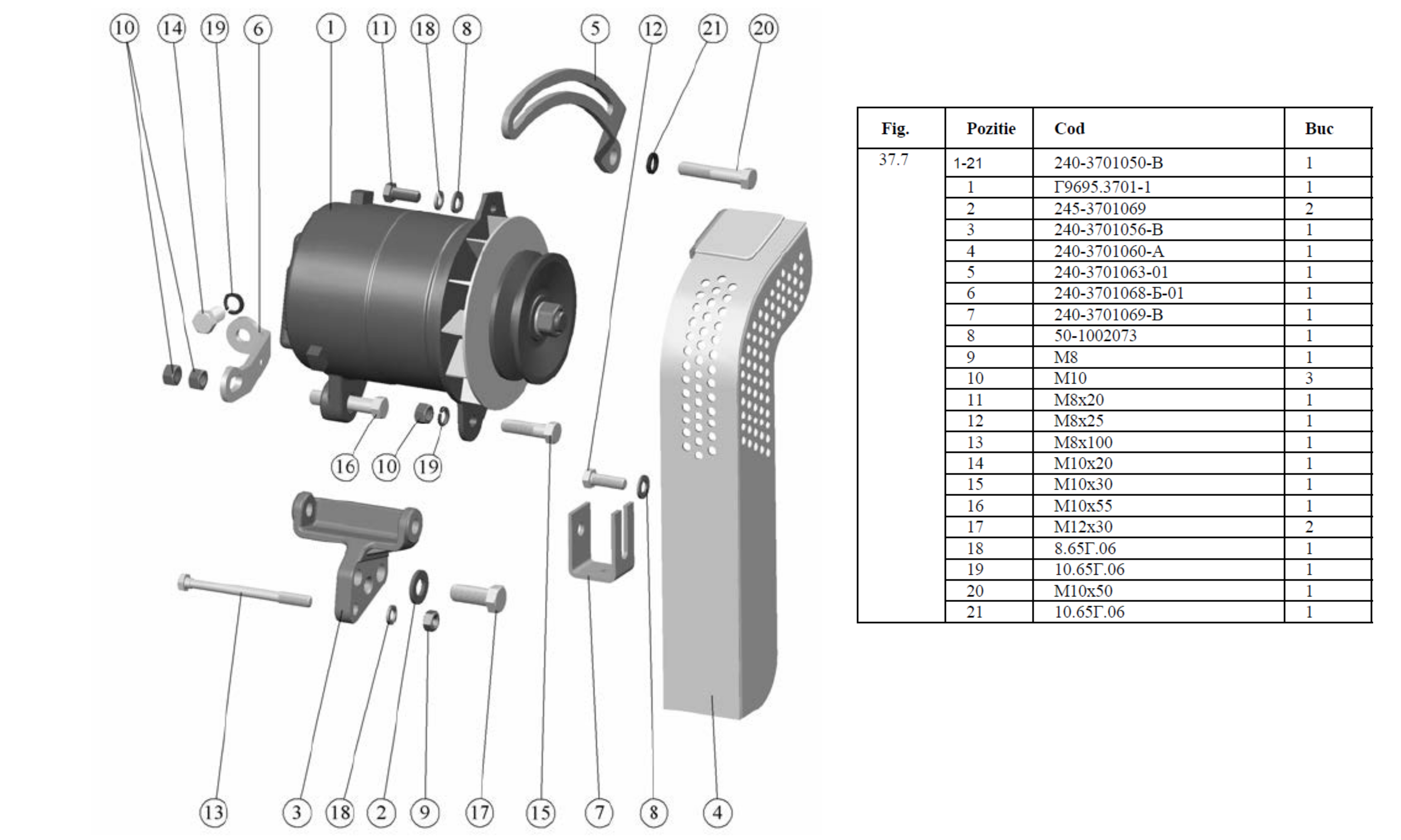 APARATOARE CUREA ALTERNATOR 240-3701060-A TRACTOR BELARUS 820..
